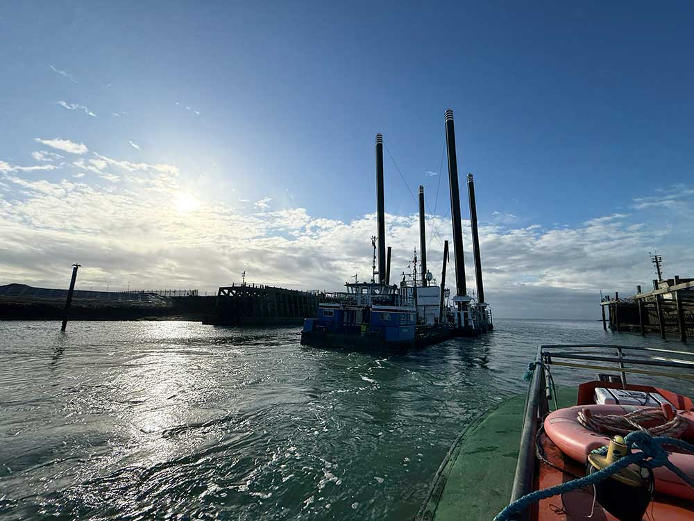 Last weekend marked a significant step forward at Newhaven Harbour as the Octopus departed following the completion of its final works on the Fishing Stages.
